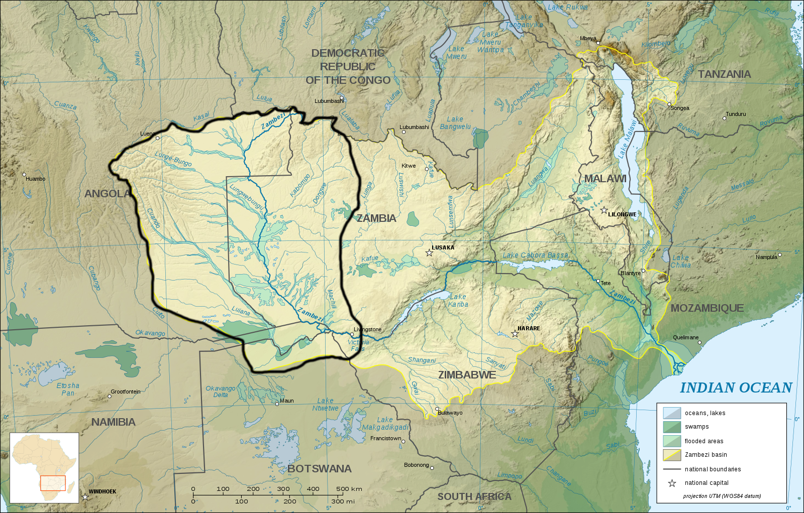 - The Upper Zambezi (UZ) and the Kafue flowed SSE into the Kalahari Basin, and on into the Limpopo system, emptying into the Indian Ocean during the